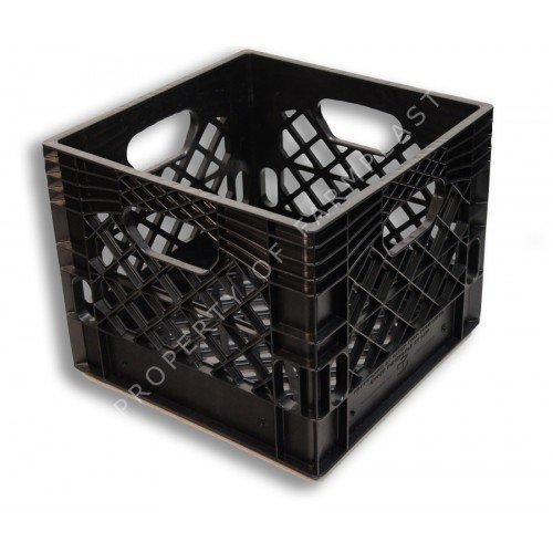 Authentic heavy duty milk crates designed in accordance with the highest industry standards. Made from heavy duty HDPE plastic to prevent cracks and withstand years of high loads and abuses. Also known as square, large 4 Gallon or 16 Quart milk crates Reinforced corners and handles Dimensions: 13" x 13" x 11" Stackable