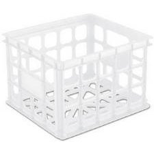 Storage crate features a recessed rail designed for hanging file folders. White. Dimensions: 15 1 4" L. x 13 3 4" W. x 10 1 2" H